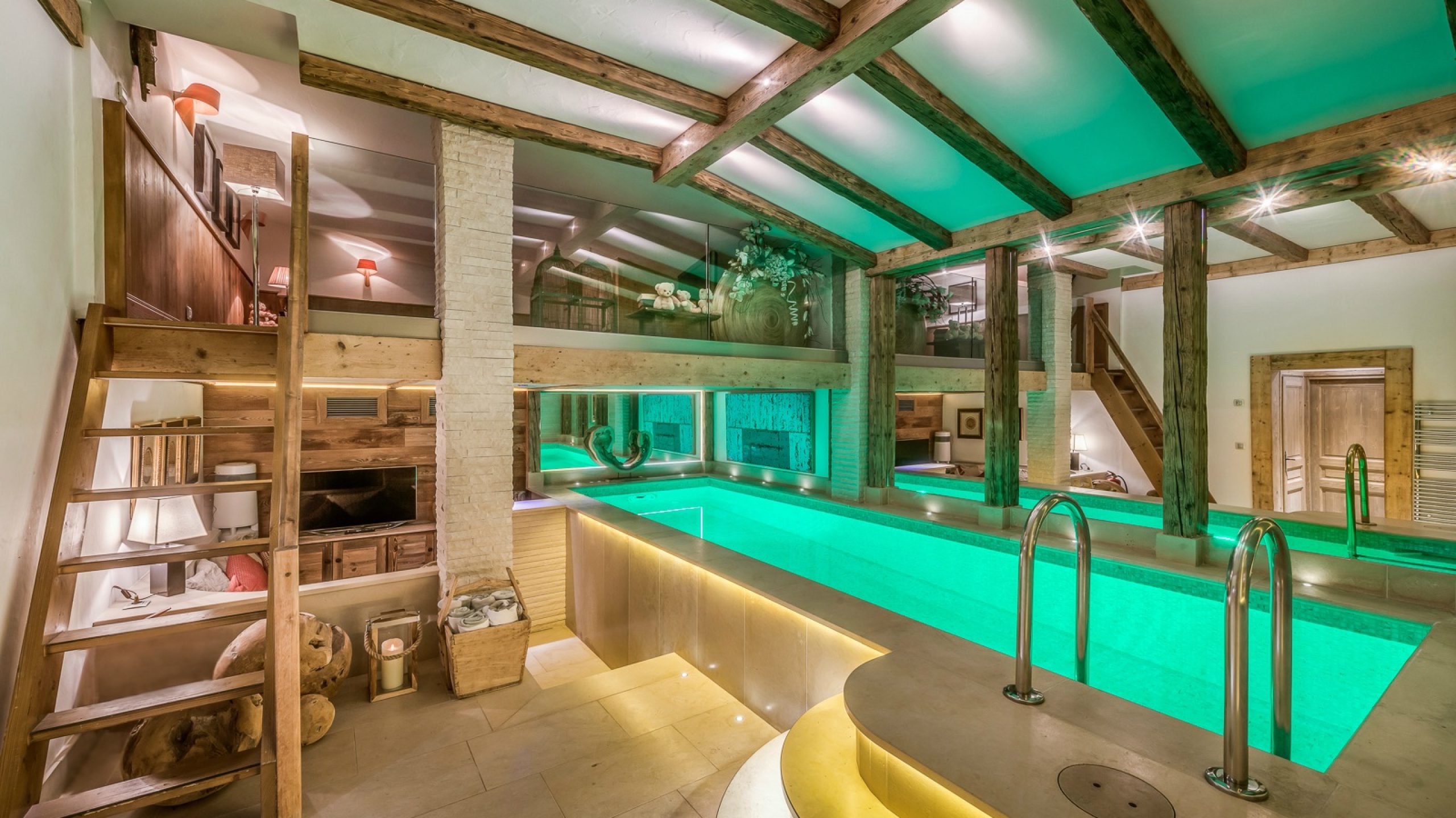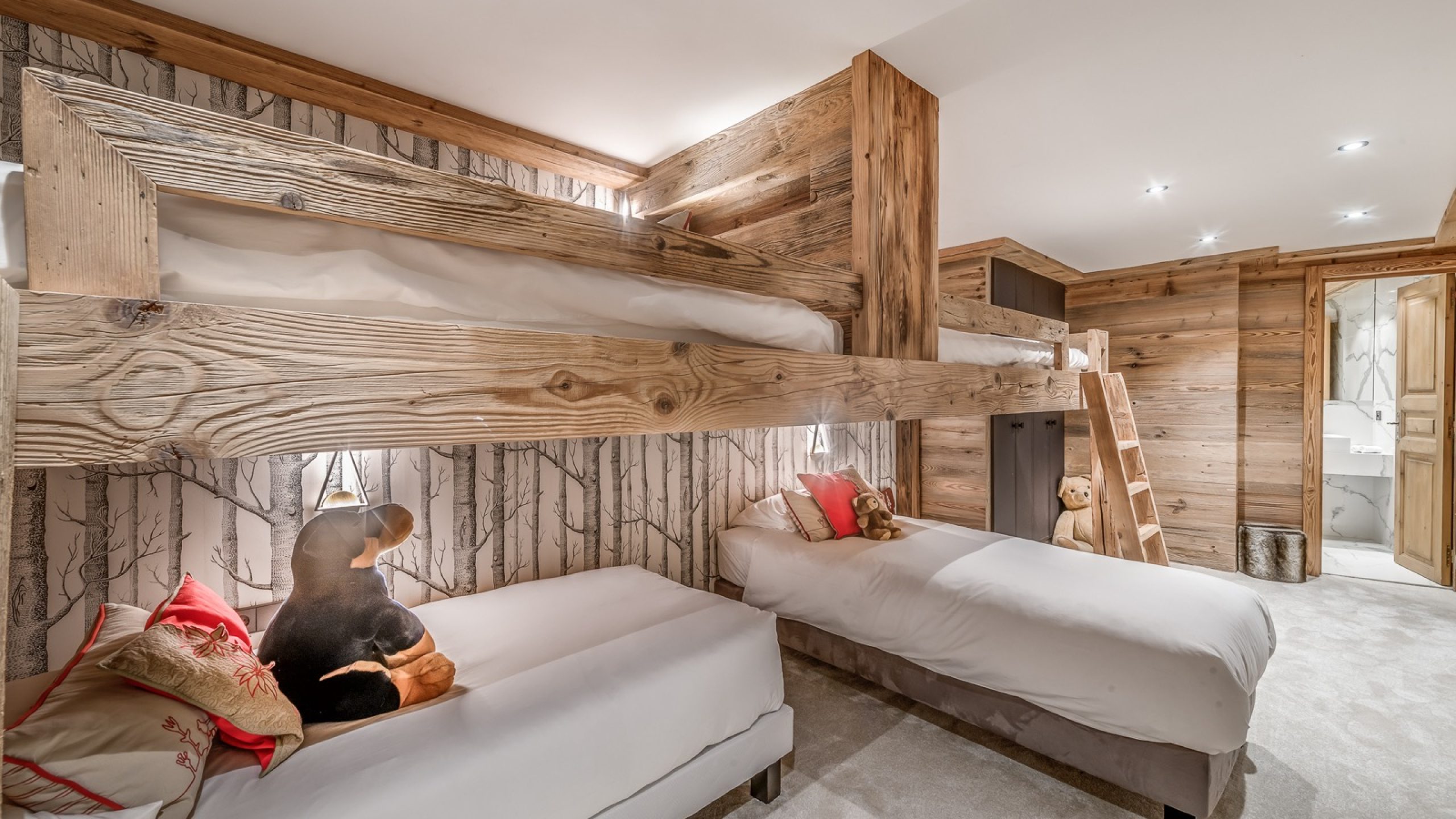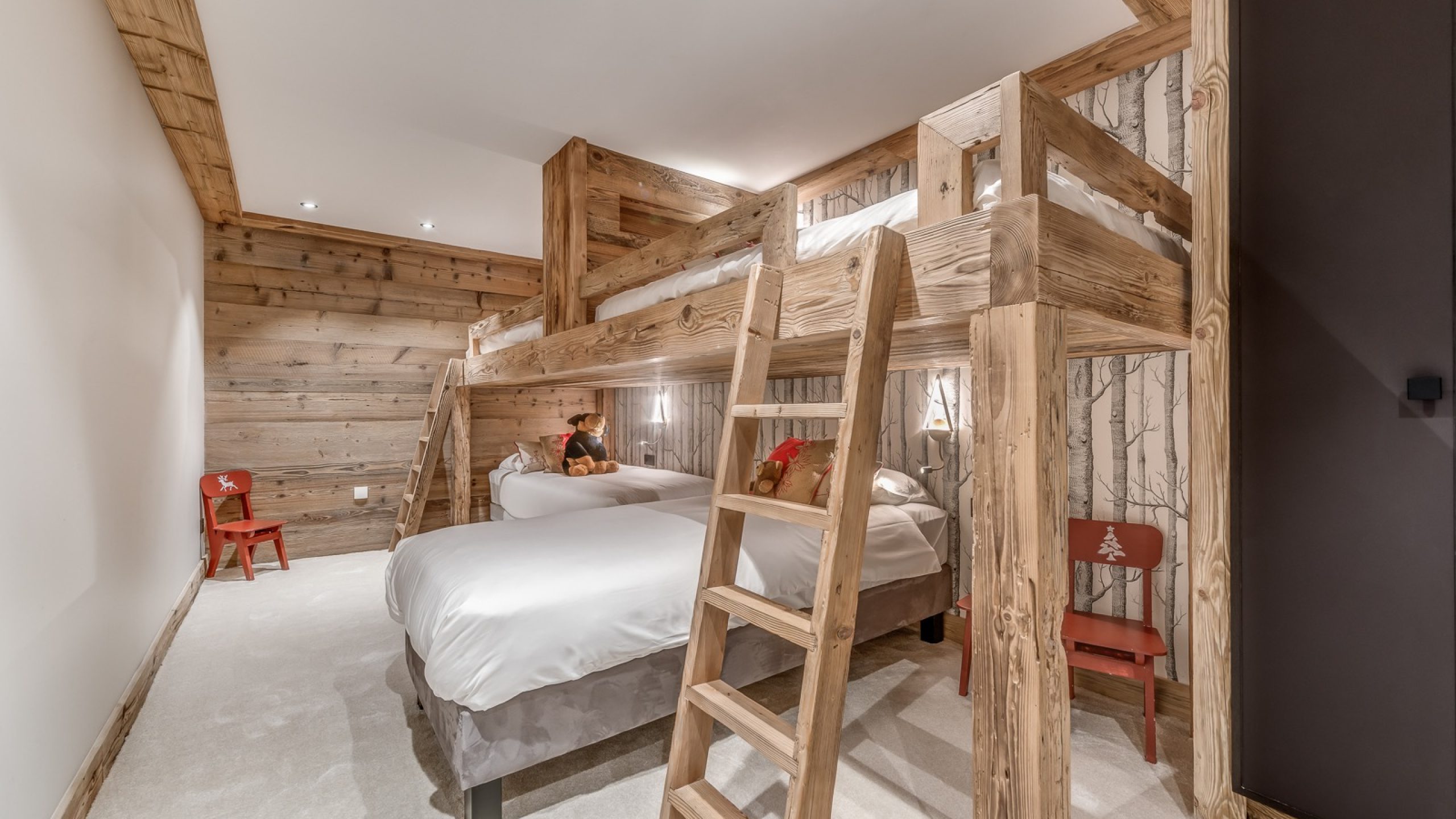 Ce niveau optimisé propose un véritable espace enfants comprenant une salle de jeux / TV, une chambre avec lits superposés et salle d’eau attenante, ainsi qu’un sauna accessible à tous les invités.