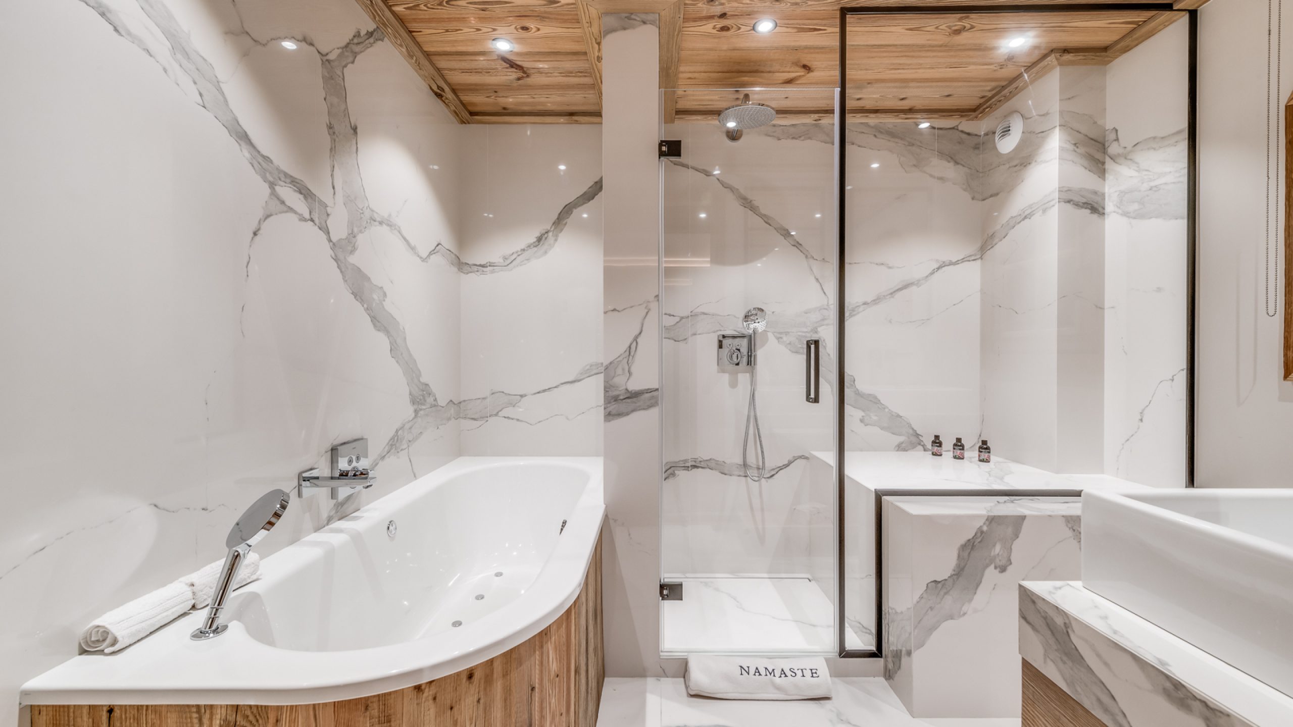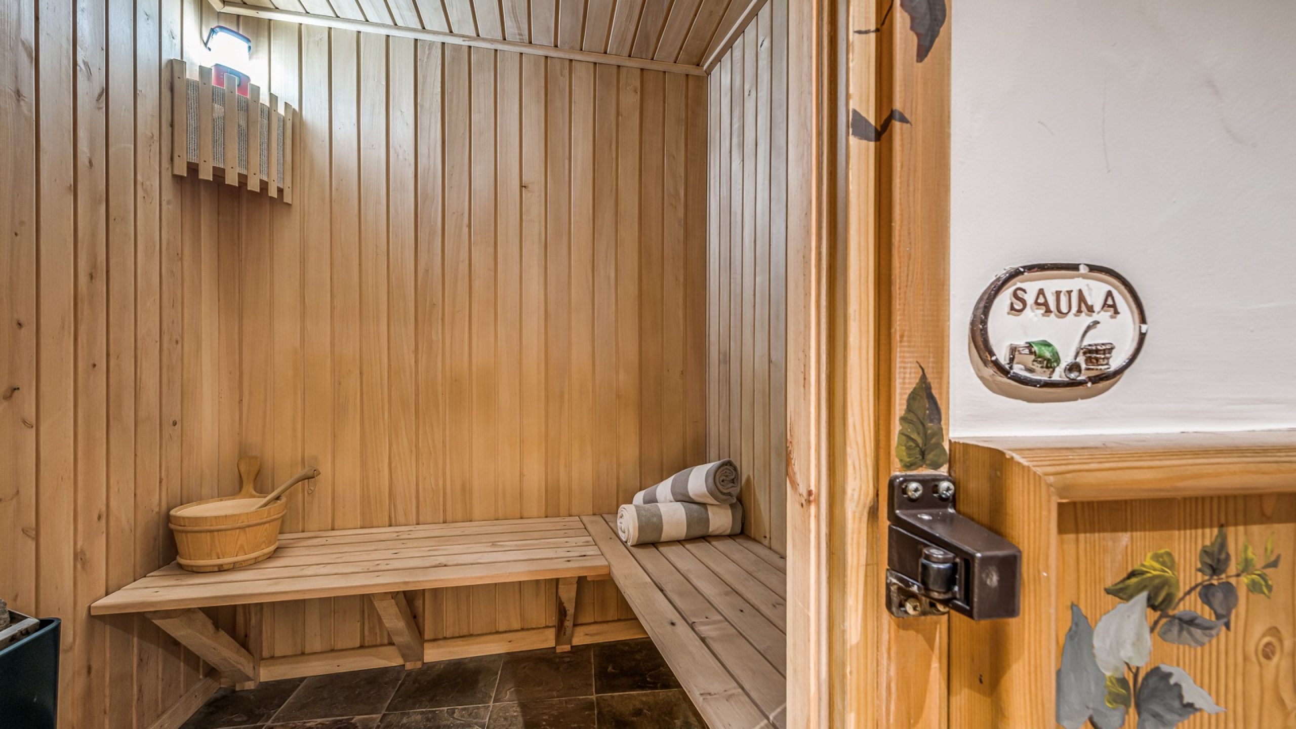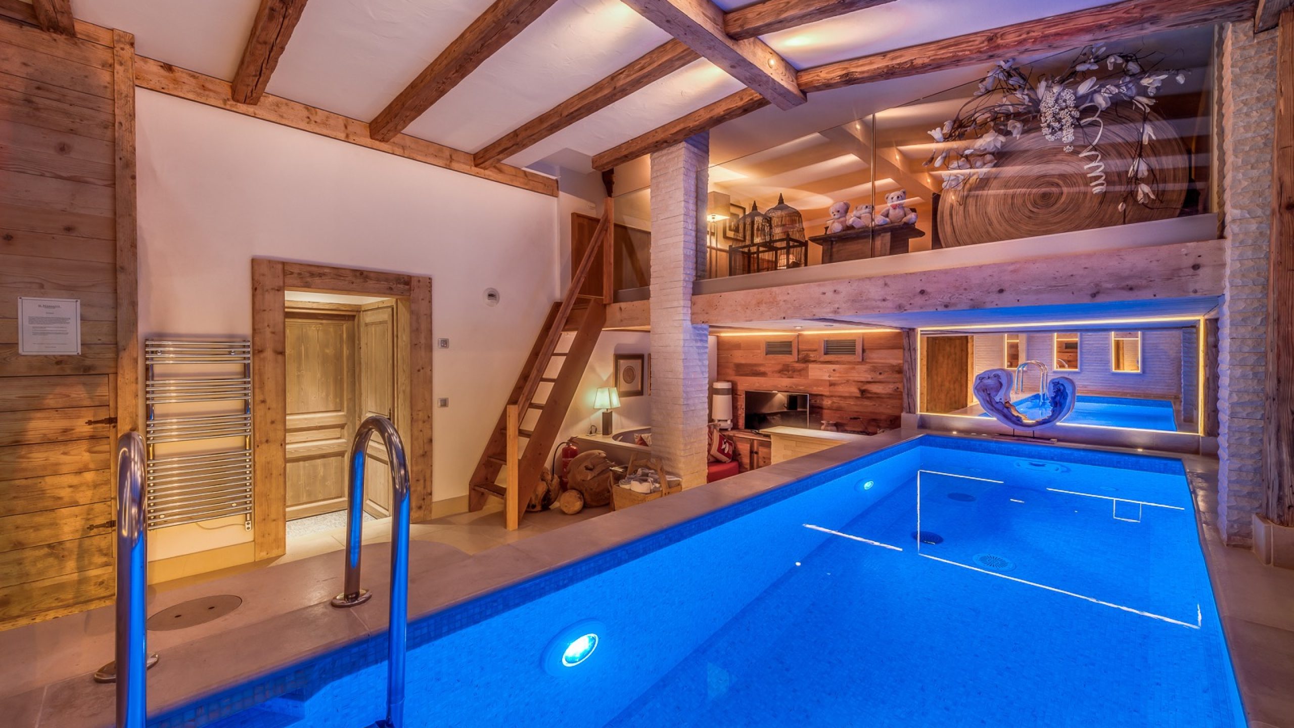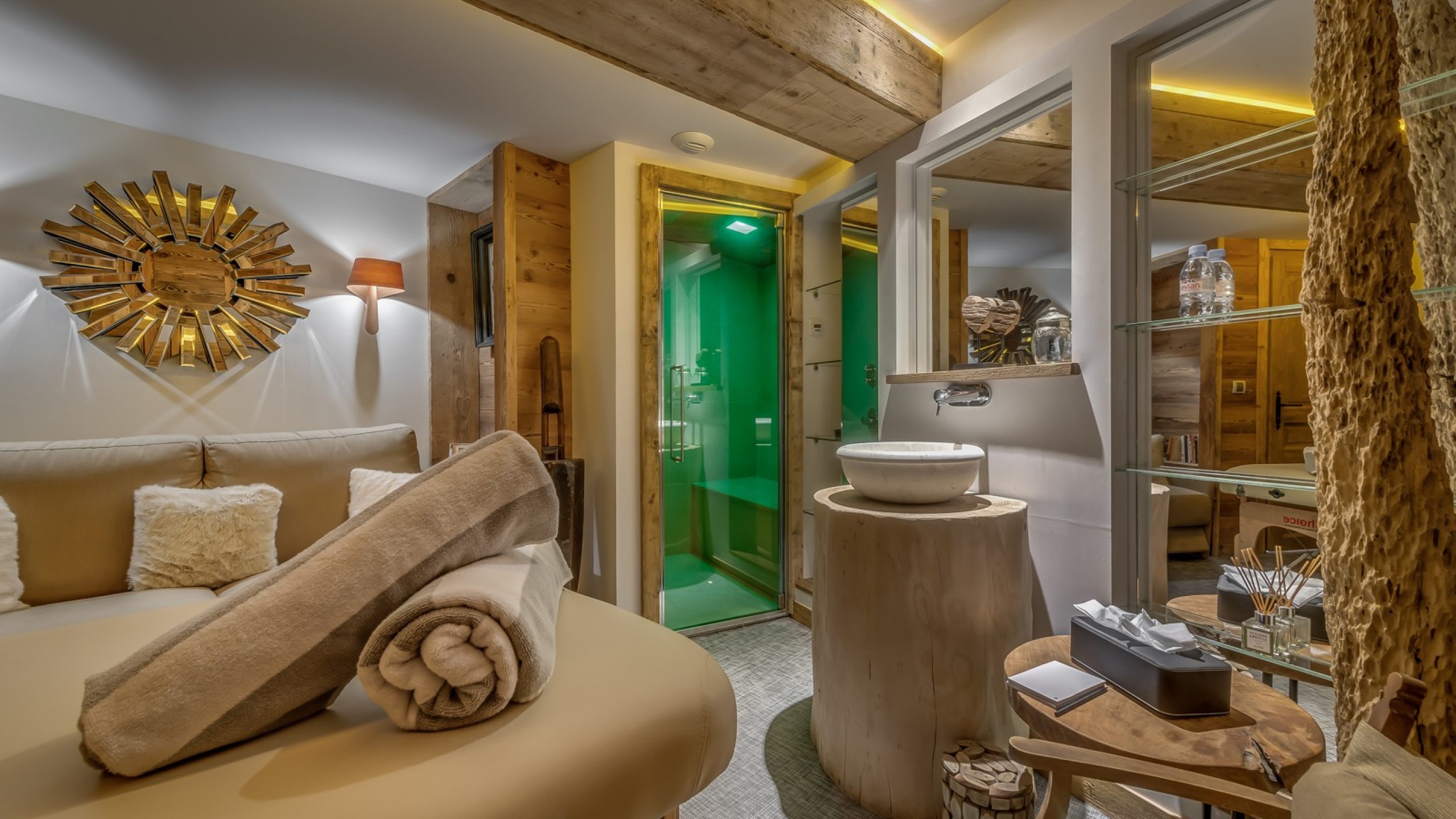 Ce niveau optimisé propose un véritable espace enfants comprenant une salle de jeux / TV, une chambre avec lits superposés et salle d’eau attenante, ainsi qu’un sauna accessible à tous les invités.