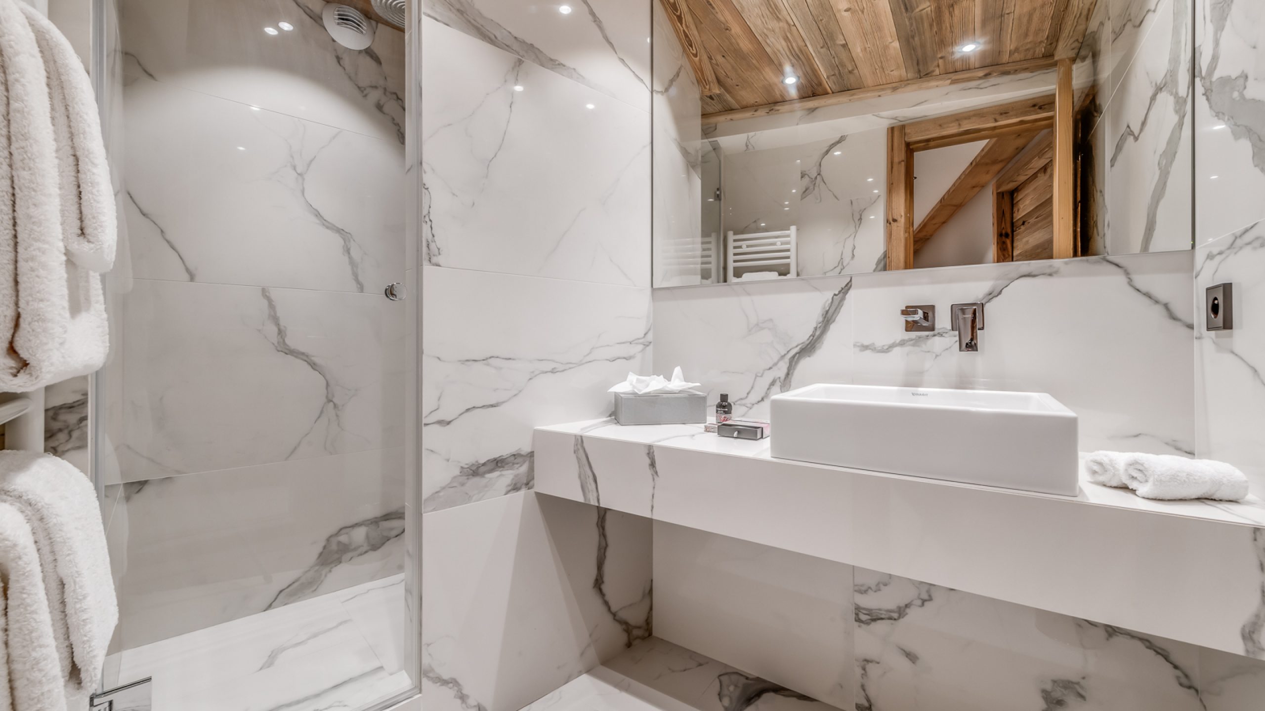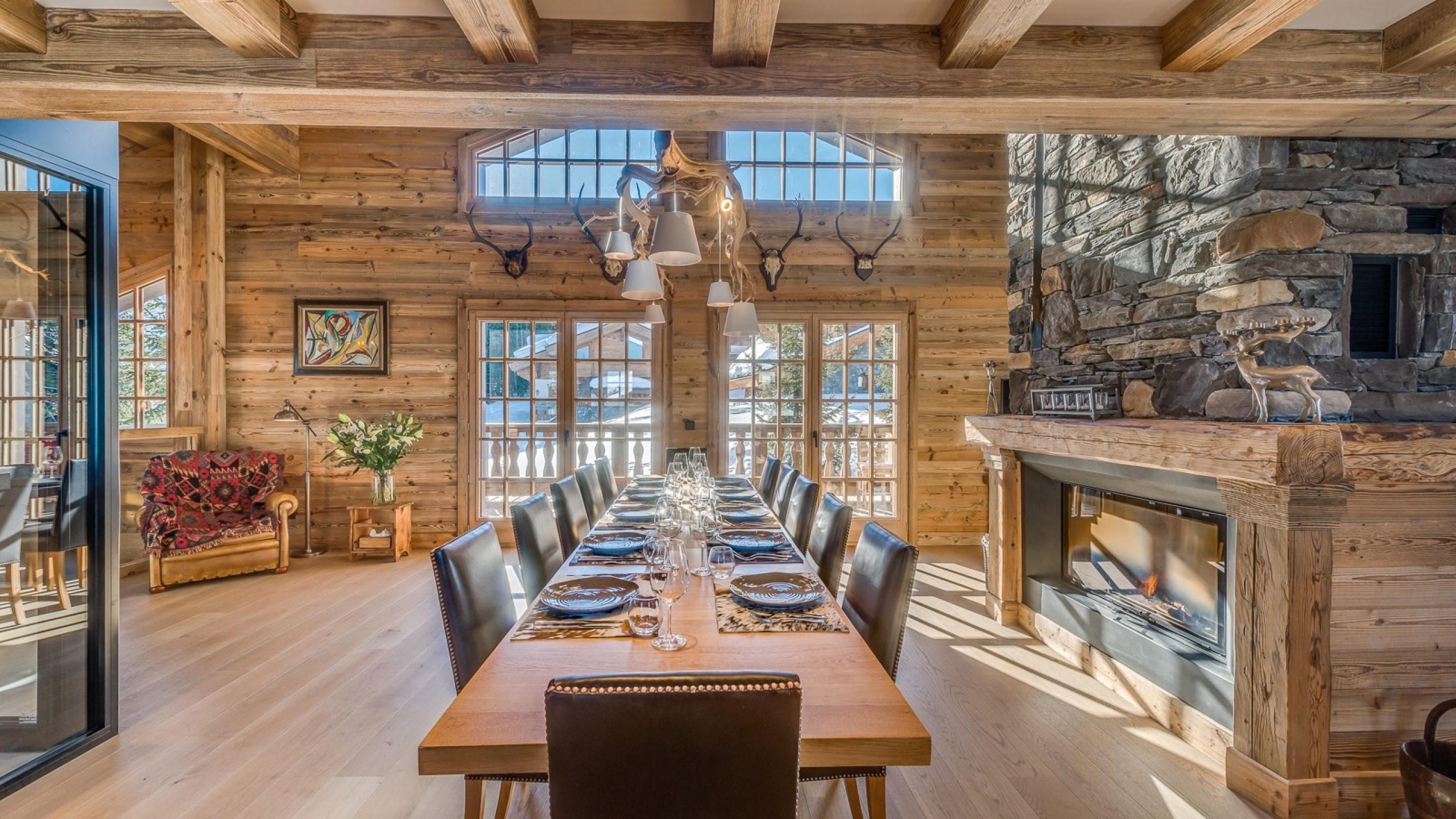 De larges terrasses exposées plein sud prolongent les espaces de vie, offrant un cadre idéal pour se détendre, bronzer ou profiter de moments d’après-ski en contemplant les sommets.