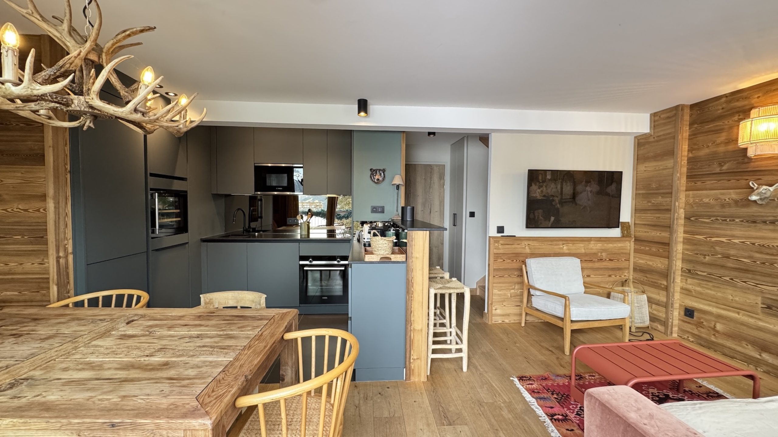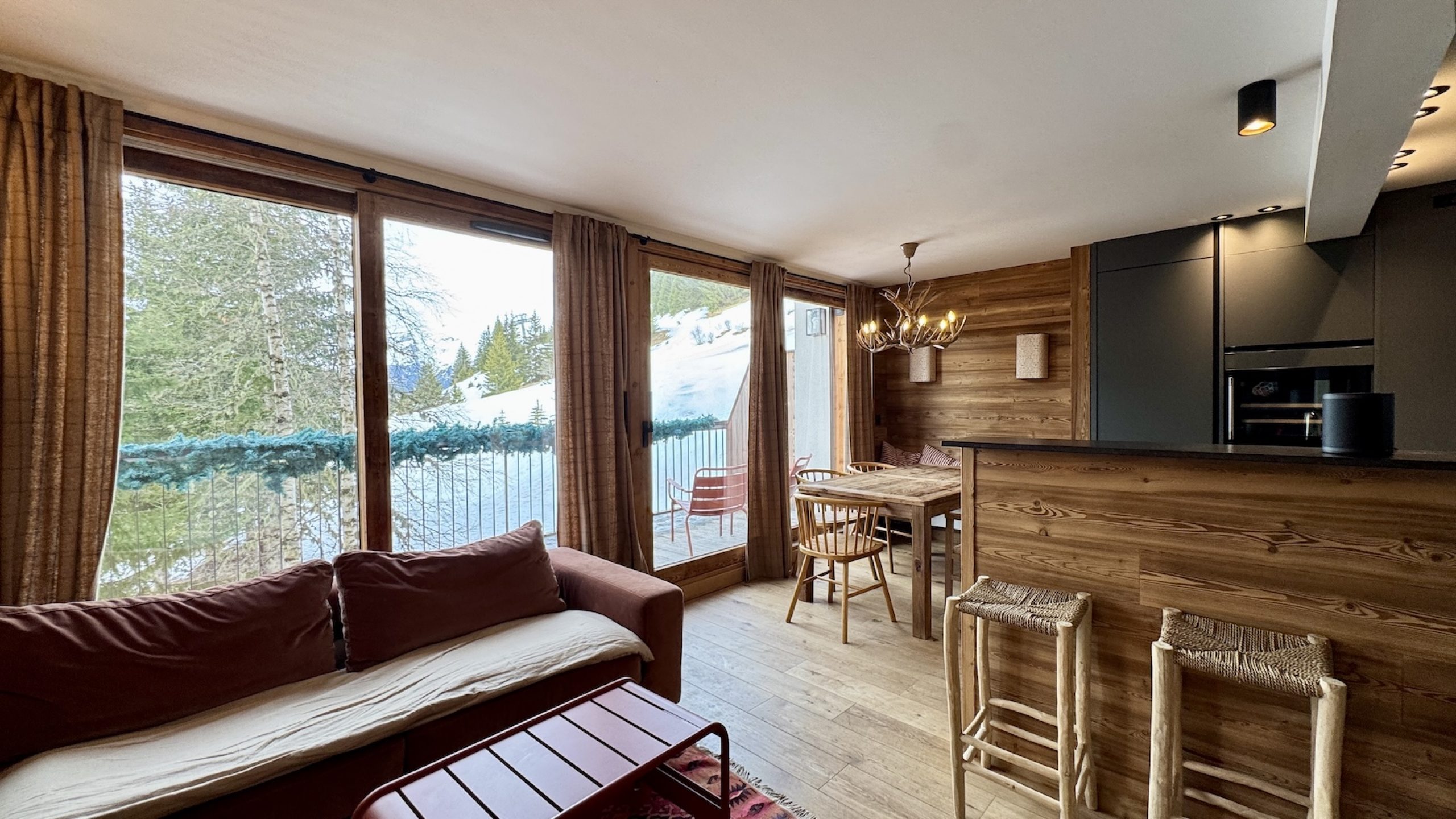 Situé au Domaine de l’Ariondaz à Courchevel Moriond, skis aux pieds, ce charmant duplex décoré avec goût se compose au premier niveau d’une entrée avec rangements, un wc invité, un séjour avec cuisine ouverte entièrement équipée, une terrasse.