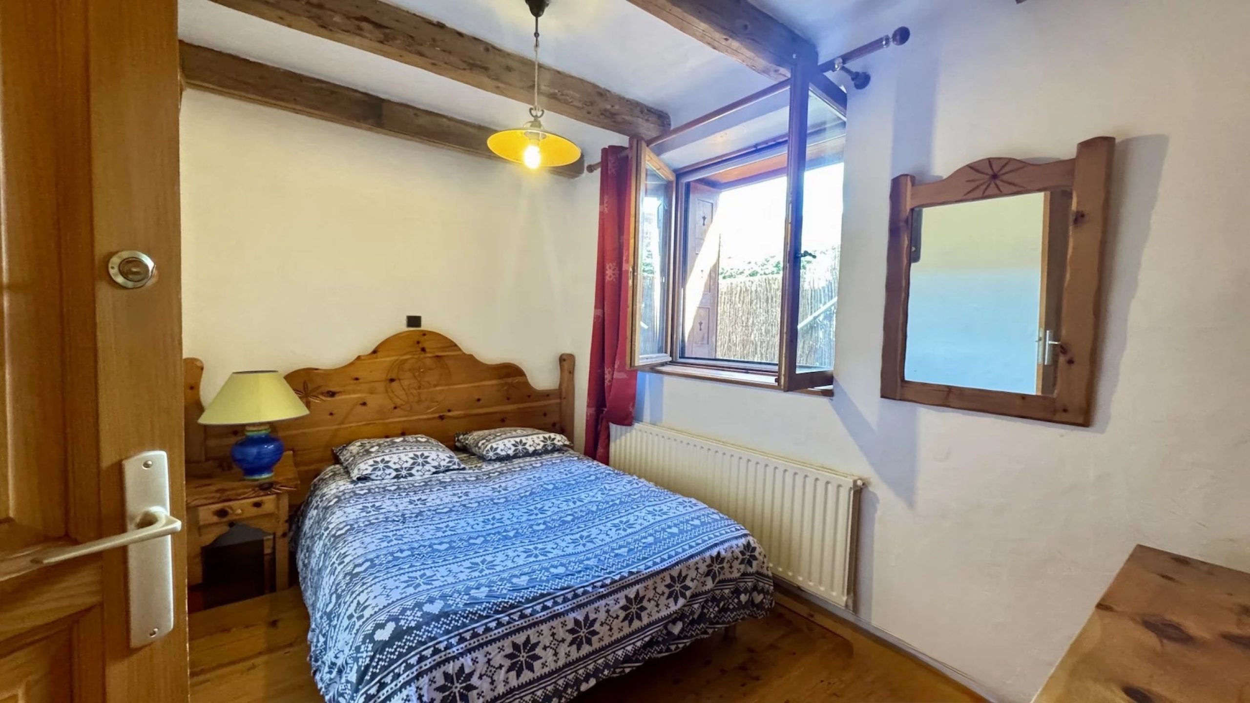 Au dernier étage et sous pente, une chambre avec rangements.